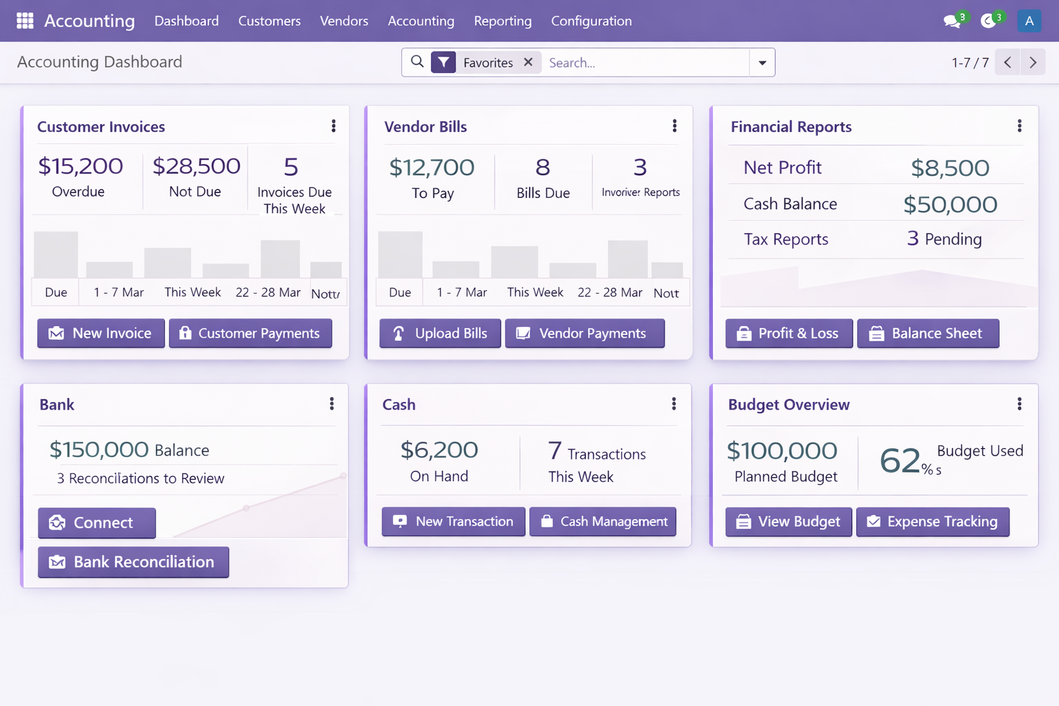 With our Accounting & Finance system powered by Odoo, businesses can: